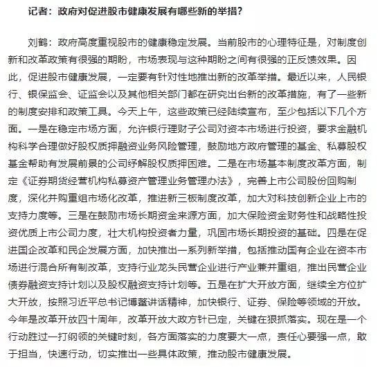 在10月19日的采访中,刘鹤对A股走势、民营企业地位、“国进民退”、当前经济金融形势和产业结构变化等问题做了全面的解答。