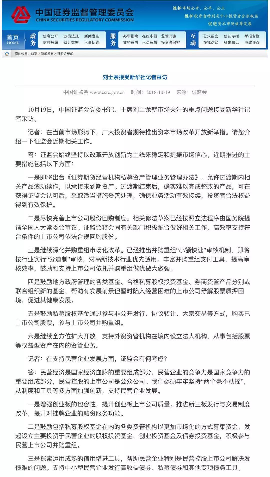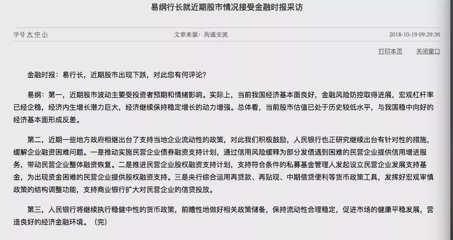 10月19日上午,国务院副总理刘鹤、央行行长易纲、银保监会主席郭树清、证监会主席刘士余分别接受记者采访,对近期国内股市以及经济形势发表意见,阵势之大实属罕见。