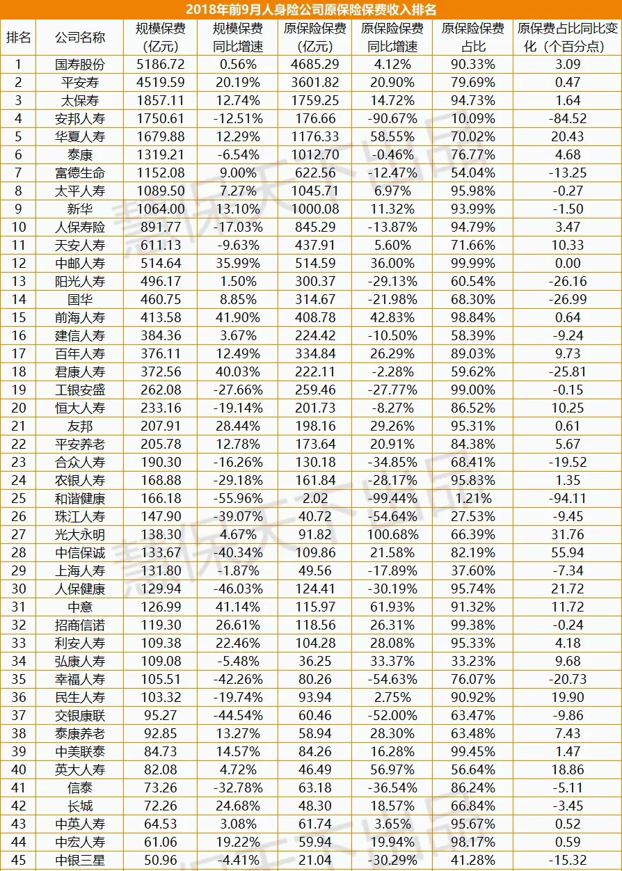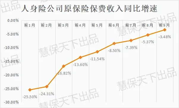 虽然2018年开局不利,但在经历了断崖式下跌之后的寿险业正在逐步回暖。数据显示,前9月,人身险公司原保险保费收入21853.31亿元,同比增速为-3.48%,相比今年1月份-25.5%的同比增速来说有明显改观,同时,行业的规模保费同比增速达2.29%,已开始正增长。
