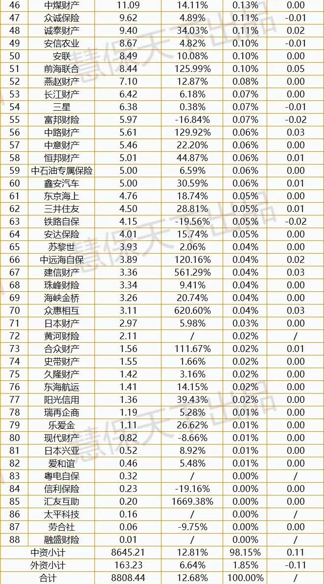 保费数读:财险增速连续9月下滑,众安年底或破百亿;寿险转型生变,原保险保费占比不升反降行业动态