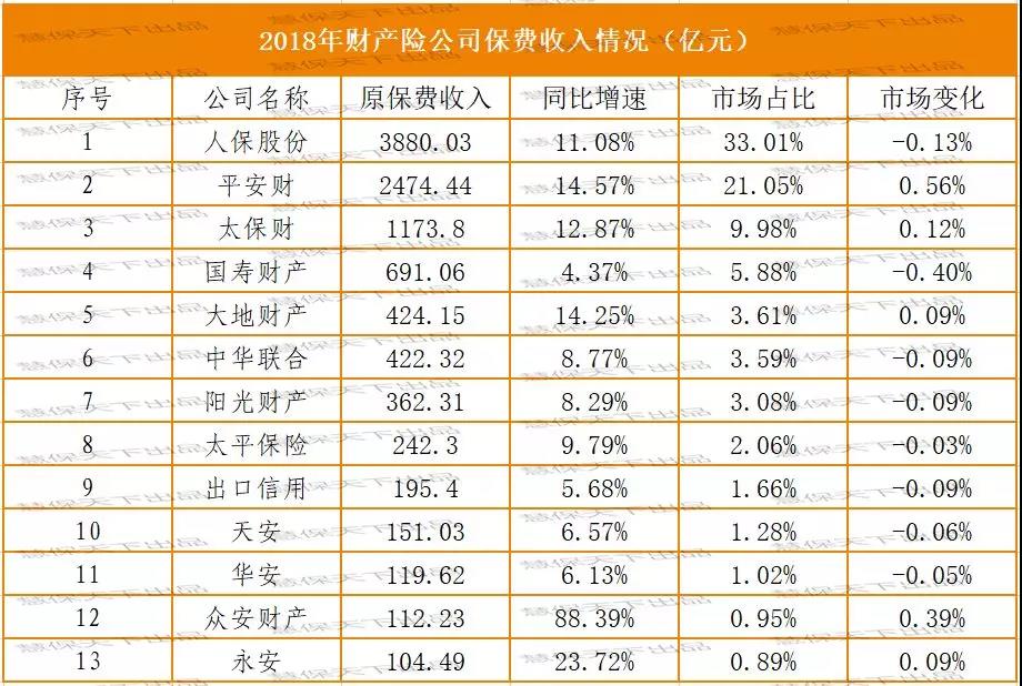 2018产险数据全解读:老三家市场占比64%,13家险企迈入百亿俱乐部行业动态