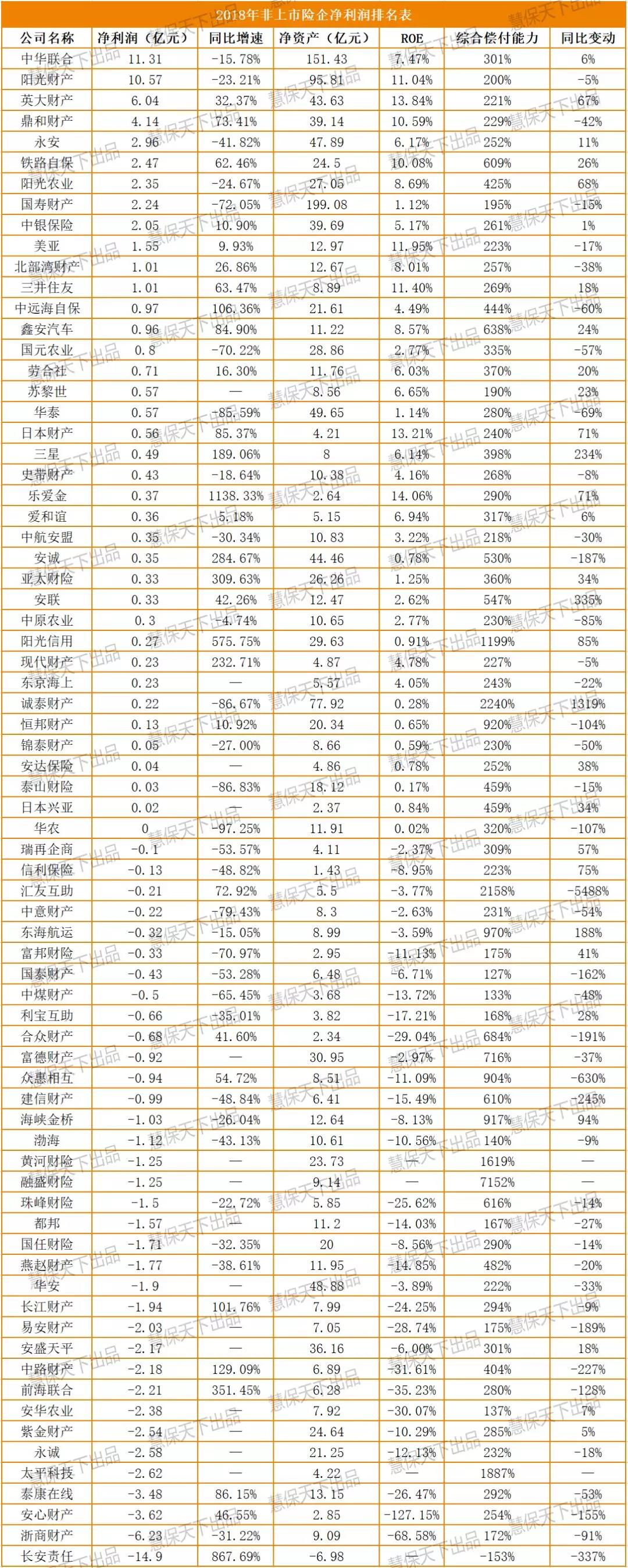 非上市财险公司净利润大排名:2018年合计亏损11亿元,而2017年盈利33亿元行业动态