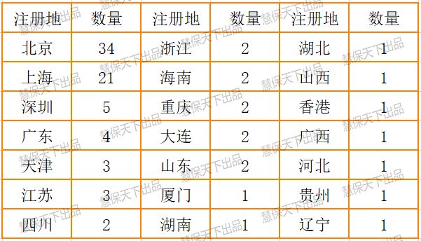 财产险公司分布广。目前,88家财险公司中,注册地在北方的39家,南方49家,其中,北京20家,上海17家,贵州、湖南、青海、内蒙和大连尚无法人机构注册。地方政府普遍具有农业保险、基建、大型项目、大病医保等相关的保源,而保源又是税源的根本源头,于是有了“把保费留在**,把税收留在**”的标语,再叠加财险公司普遍盈利周期短于寿险公司,于是地方政府对财险公司的筹建积极性较高,财险公司基本达到了广覆盖。