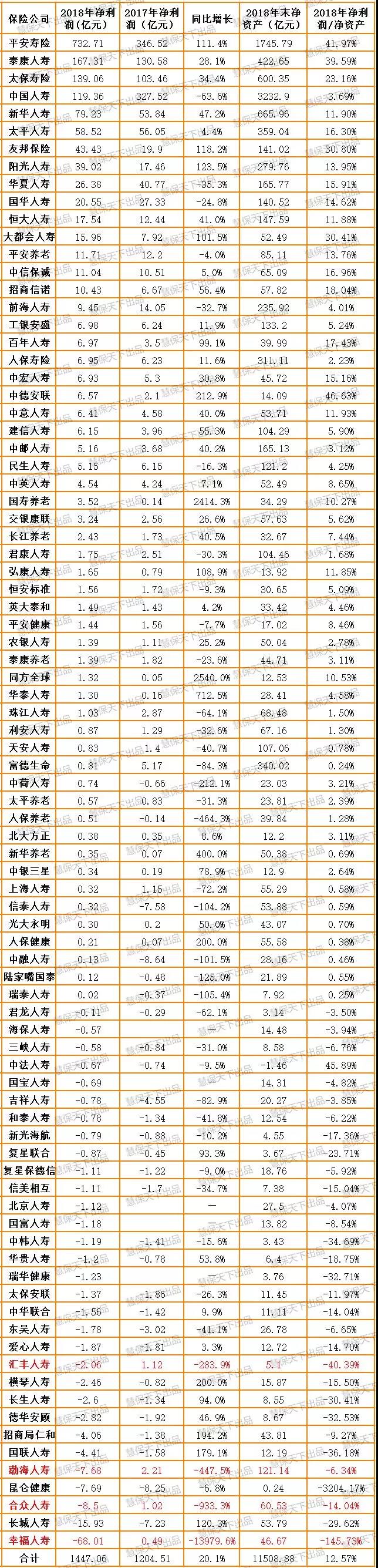 整体来看,2018年,纳入统计的86家寿险公司合计实现净利润1447.06亿元,相较2017年的1204.51亿元,同比增长20.1%。