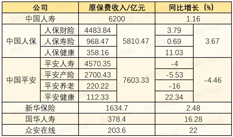 中国人保原保费收入5810.47亿元,增3.67%