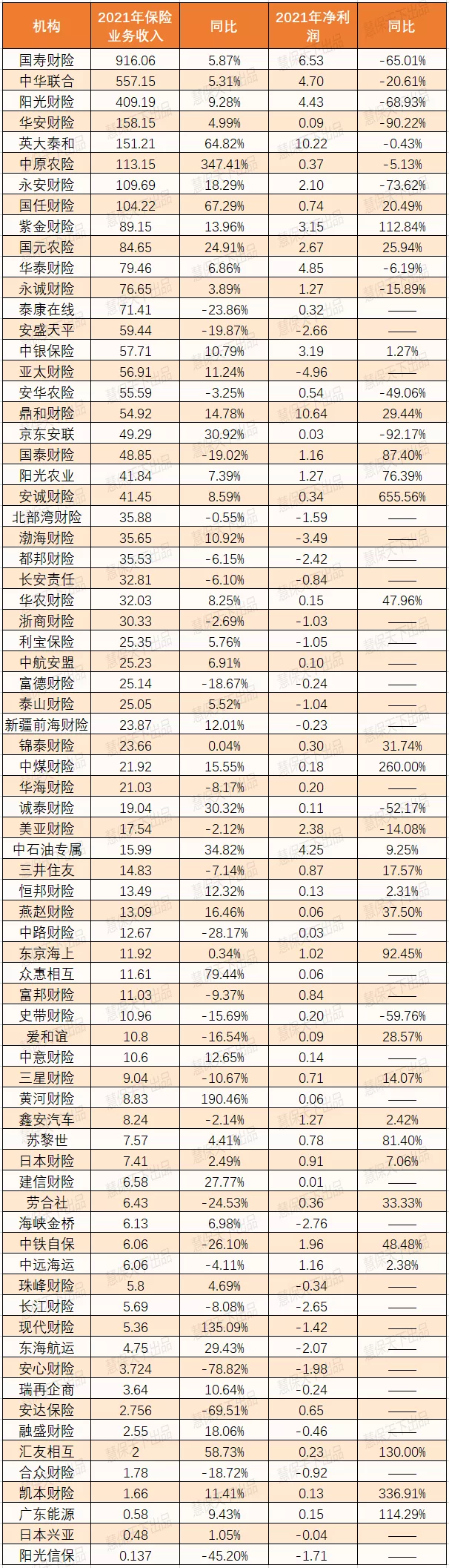 2021非上市财险公司:业务收入增10%,利润下滑逾30%行业动态