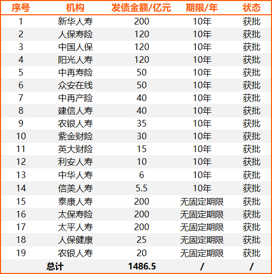 年内险企发债获批总额近1500亿元,永续债成新宠