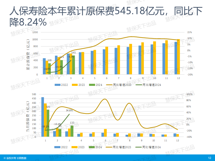 一季度上市寿险险企保费收入整体下滑,人保寿险单月增幅高达34.84%