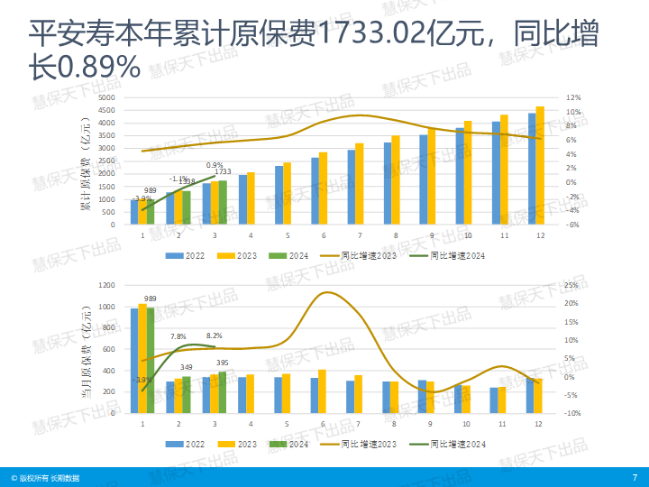 具体来看,7家上市寿险公司一季度的原保费收入及同比增速分别为: