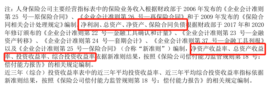 伴随着行业新会计准则的推进,越来越多的公司也在进行落地,正如在一季度的偿付能力报告中,有多家公司进行备注,指明净资产收益率、总资产收益率、投资收益率、综合投资收益率等指标都是依据新准则进行编制。
