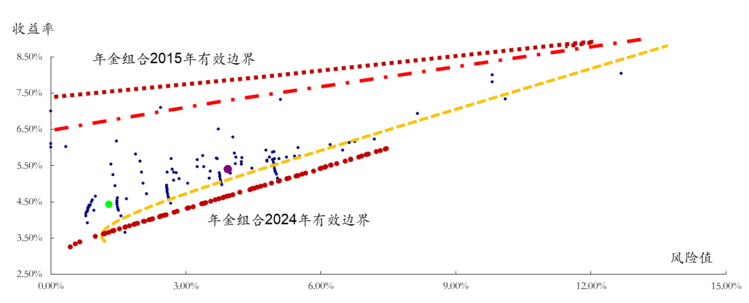 (三)年金基金战略资产配置有效边界显著往右下方移动