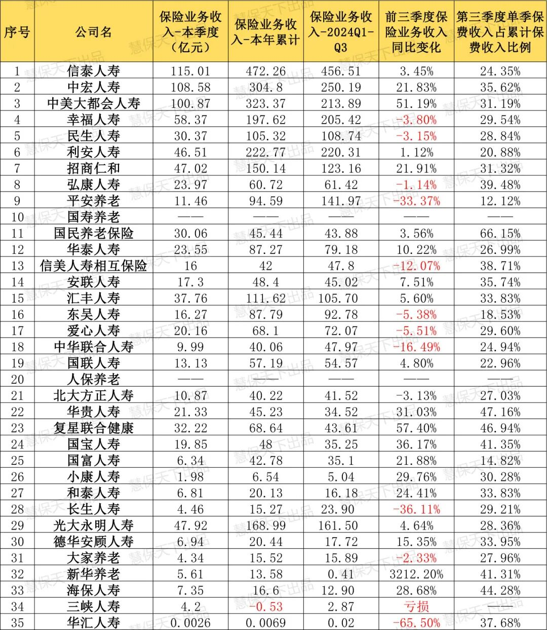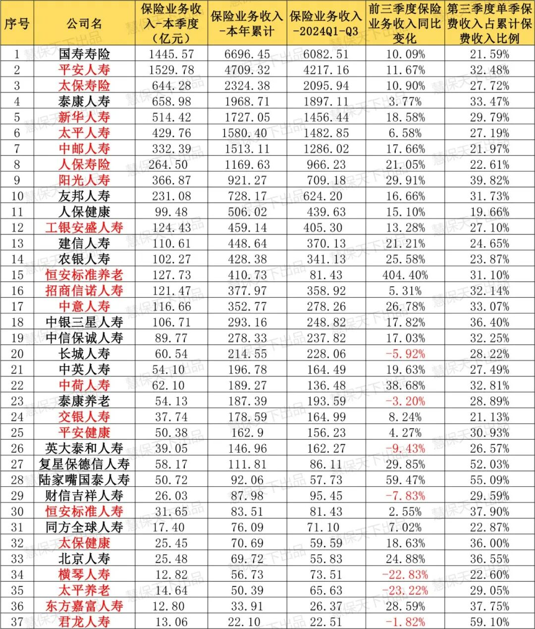 70家公布保费收入的险企中,有50家前三季度累计保费收入实现正增长,且有24家险企三季度单季的保费收入占比超过累计保费收入的三分之一。行业原保费累计收入3.84万亿元,同比增长10.2%,超过保险业整体8.8%的增幅。