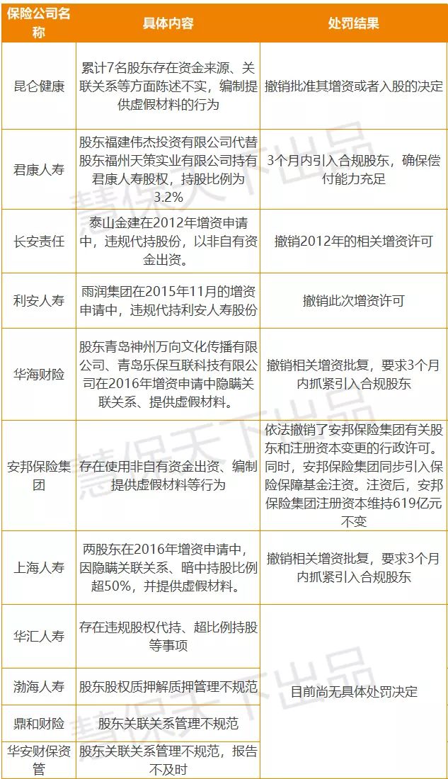 而上海人寿不是第一家,也不是最后一家,经『慧保天下』梳理,从2017年至今开始针对保险法人公司治理问题进行深度检查以来,已经有累计7家公司被撤销增资许可,相关股东被勒令退出。具体包括昆仑健康、利安人寿、长安责任、君康人寿、华海财险、安邦保险集团、上海人寿。