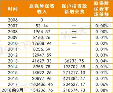 从目前的数据来看,昆仑健康显然在一定时间内扛住了压力。2017年其规模保费出现一定负增长(-44.48%),原保险保费却实现同比669%的高增长。进入2018年,前8月,其原保险保费同比增长44.62%,规模保费同比增长50.46%,双双恢复正增长。原保险保费市场份额相较以往也有了显著提升,从2017年底的0.06%直接上升至2018年前8月的0.08%。