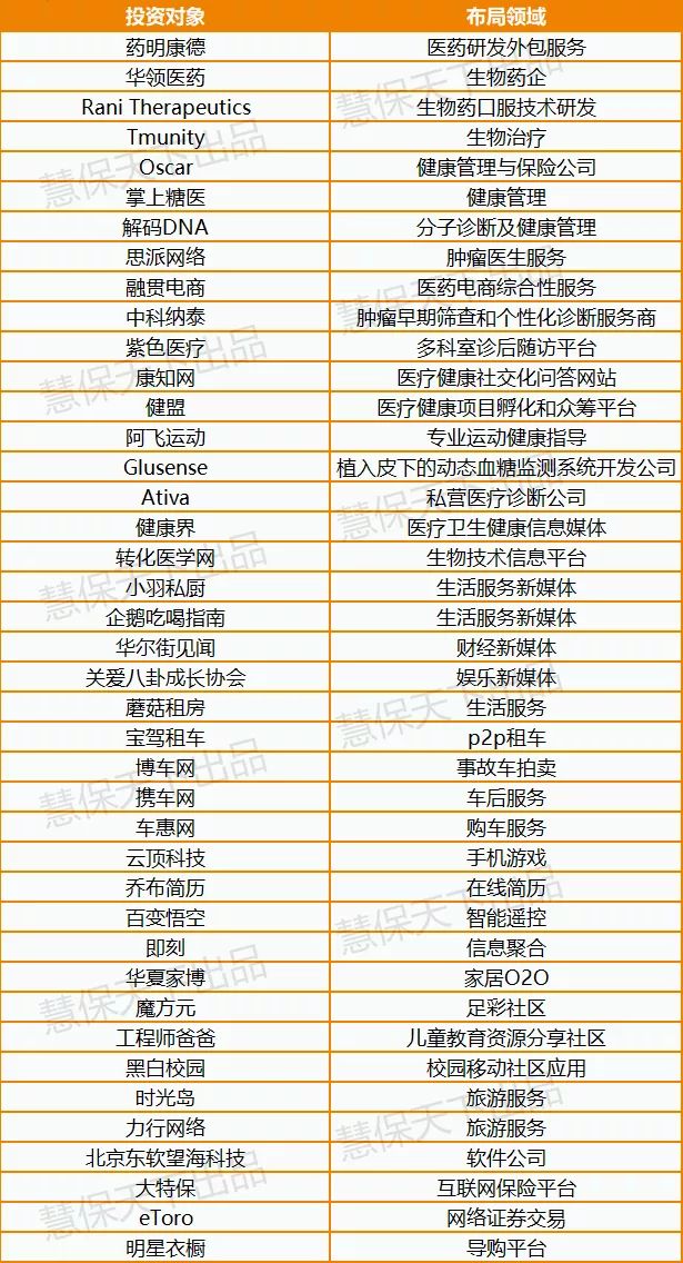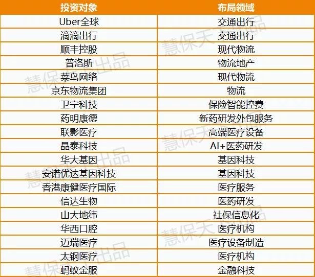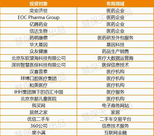 当然,作为一家以寿险为核心主业的保险集团,医养大健康产业依然是中国人寿投资的一大重点,国寿集团旗下的国寿大健康产业基金、国寿成达(上海)健康医疗股权投资管理有限公司表现活跃。