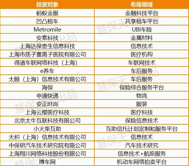 与此同时,在金融/保险科技平台方面,中国太保也着墨较多,目前已经投资了蚂蚁金服、保险综合服务平台海保、保险信息技术供应商太牛互联、互助信托计划定制和服务平台“小火柴互助”等。