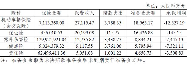 2017年安心财险保费收入最高的五大险种承保盈利情况: