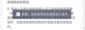 相互宝以“芝麻信用分达到650”来作为会员加入的条件之一,以保证会员的支付意愿以及能力;而点滴相互没有直接列明对于会员的信用要求,不过在点击加入之后,会弹出一条提示信息“恭喜,您的信用状态满足加入条件”,说明其或也存在一定的信用筛选机制,只是目前尚不清楚具体原理。