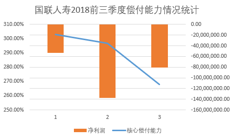 同时国联人寿业绩收入也变动颇大,2015年由于万能险业务的开展国联人寿获利颇丰,第一年便取得了1632.54万元的盈利。但是随着16年原保监会《关于规范中短存续期人身保险产品有关事项的通知》的下发,监管遵循“保险姓保”的原则,万能险业务逐渐下滑,国联人寿的业务收入也开始下滑,2016年和2017年国联人寿都出现了亏损,根据公司2018年前三季度的偿付能力报告,公司净利润仍持续为负。