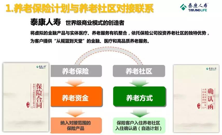 泰康人寿通过养老社区入住确认函的方式把保险产品和养老社区做了连接。