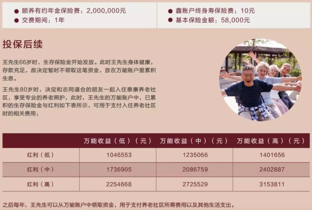 开门红之后则是400万保费获得一个资格,这几家保险公司中保费标准最高,但太平洋的一大特点是一个资格有两份保证入住权,这样算下来还是200万保费获得一份保证入住权,与其他几家保险公司相同。