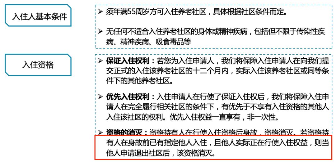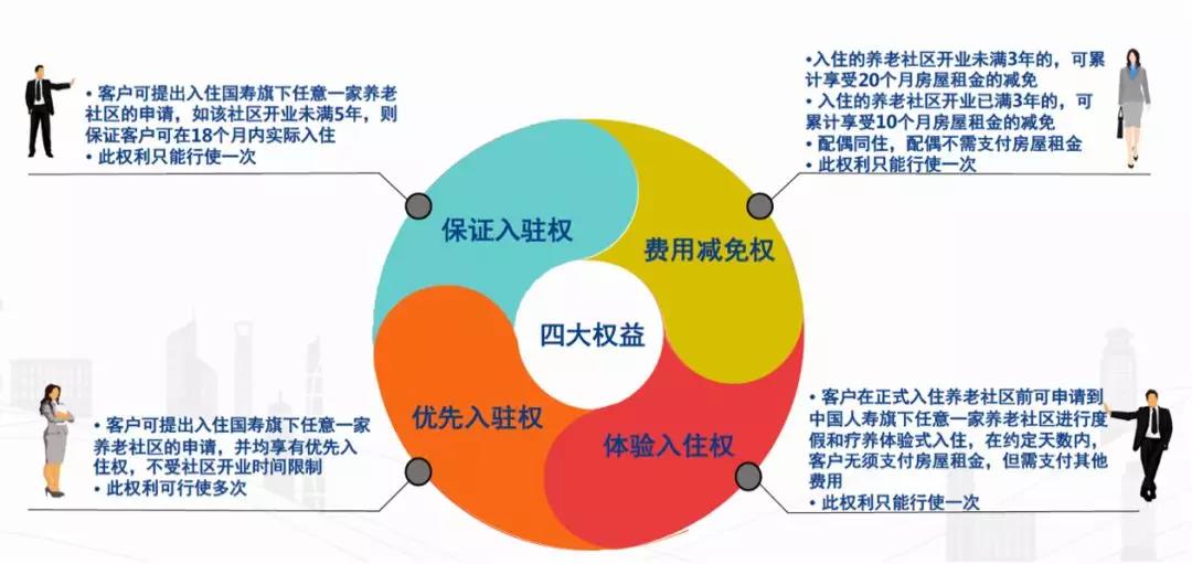 客户权益方面,保证入住权是既可以入住自建的养老社区,也可入住同等条件的其他合作养老社区。