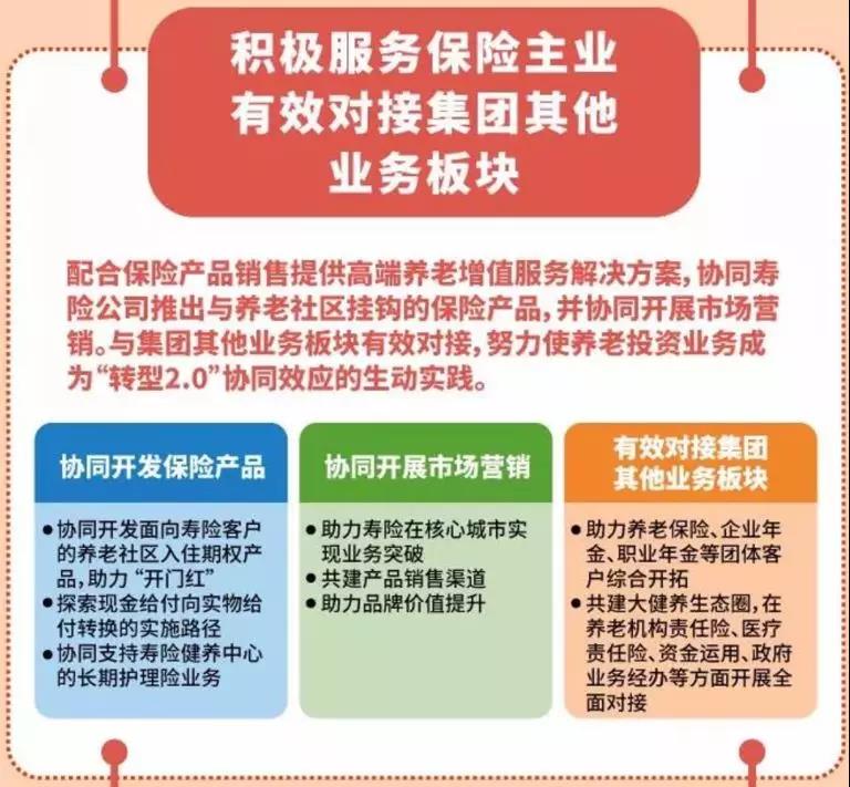 3、大量销售对接养老社区的养老险、健康险产品,以体验式营销拉动保费增长,用增量保费的一部分再投资养老机构,形成正向循环。