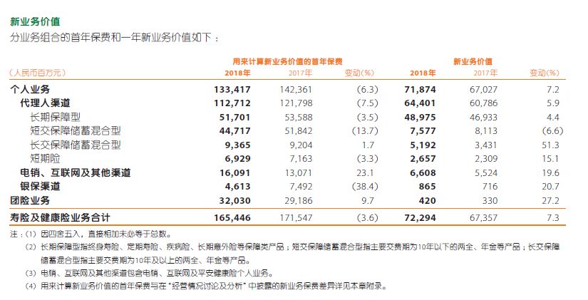 2018年,平安寿险及健康险业务全年实现新业务价值722.94亿元,同比增长7.3%,代理人渠道贡献了其中的89.1%。