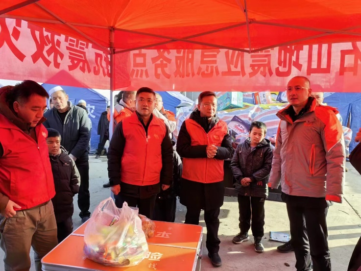 在甘肃积石山地震发生后,救援理赔工作一刻不停。12月19日凌晨至今,平安产险应急救援队彻夜持续开展救援及理赔服务工作。 20日凌晨,平安集团总经理谢永林与平安产险董事长兼CEO龙泉等一行抵达临夏州受灾地区。谢永林代表集团党委、执委会慰问一线员工,督导快捷理赔工作,保障捐赠物资落地到