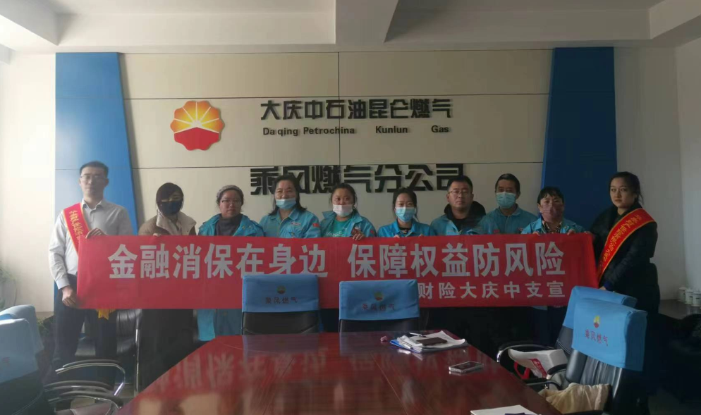 (一)华泰财险黑龙江分公司大庆中支积极响应“金融消保在身边,保障权益防风险”的号召,走进大庆中石油昆仑燃气乘风燃气分公司开展金融知识宣传活动。通过布置宣传展台、进行案例讲解、发放宣传资料、播放消保宣教动漫视频等方式,向企业员工以及社会公众普及金融知识。