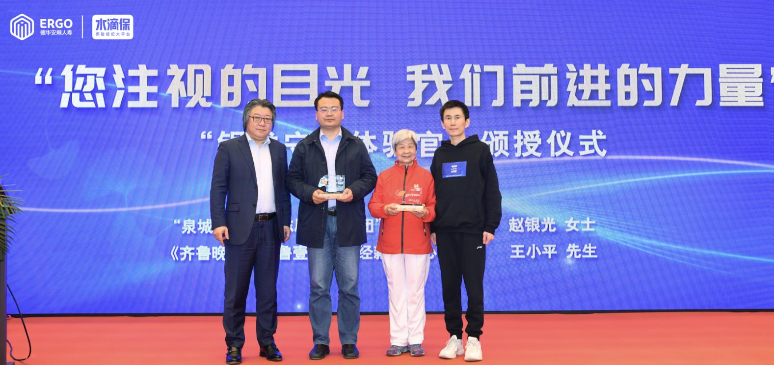 为更好加强中老年客户群体的服务体验,以及发挥新闻媒体的监督与行业发展促进之力。发布会上,由德华安顾人寿董事、总经理殷晓松先生与水滴公司创始人、董事长兼CEO沈鹏共同向誉满泉城的“反诈奶奶”“泉城阿姨金融卫士志愿者宣传团”团长赵银光女士,以及《齐鲁晚报·齐鲁壹点》财经新闻中心副主编王小平先生颁发“银发守护体验官”荣誉水晶杯,呼吁社会各界共同关注银发群体的风险保障。