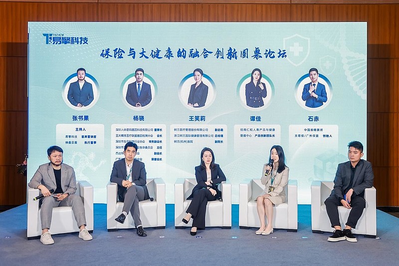 在保险科技与大健康创新融合环节,易擎科技CBO张书果与深圳人体密码基因科技董事长杨骁、树兰医疗管理股份有限公司副总裁王笑莉、招商仁和人寿产品创新团队长谭佳及京哥保/广州保盟CEO石赤共同就基因检测、健康管理在保险领域的应用,以及保险与健康产业的创新融合进行了深入讨论。论坛共识指出,保险与大健康的紧密结合将开启行业新篇章,为中国保险和健康产业带来前所未有的发展机遇