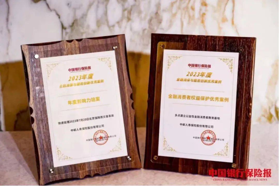 2024年3月14日,在“金融消保与服务创新主题活动”中,“中邮保险多点建立公益性金融消费者教育基地”获评消费者权益保护优秀案例,“中邮保险快速处理2023年7月29日北京强降雨灾害事故——致敬最美逆行人”获评年度影响力赔案”。