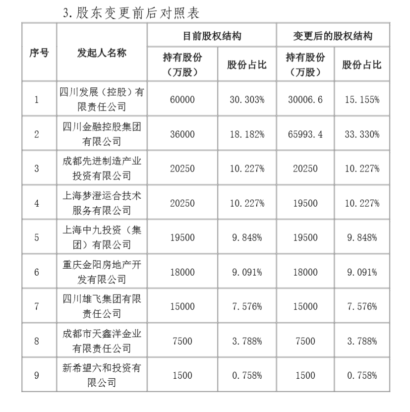 而此次转让股权的四川发展,是四川省政府出资设立的国有独资企业,于2009年1月挂牌成立,注册资本800亿元,其主要从事投融资和资产经营管理,由四川省国资委对其履行出资人职责。