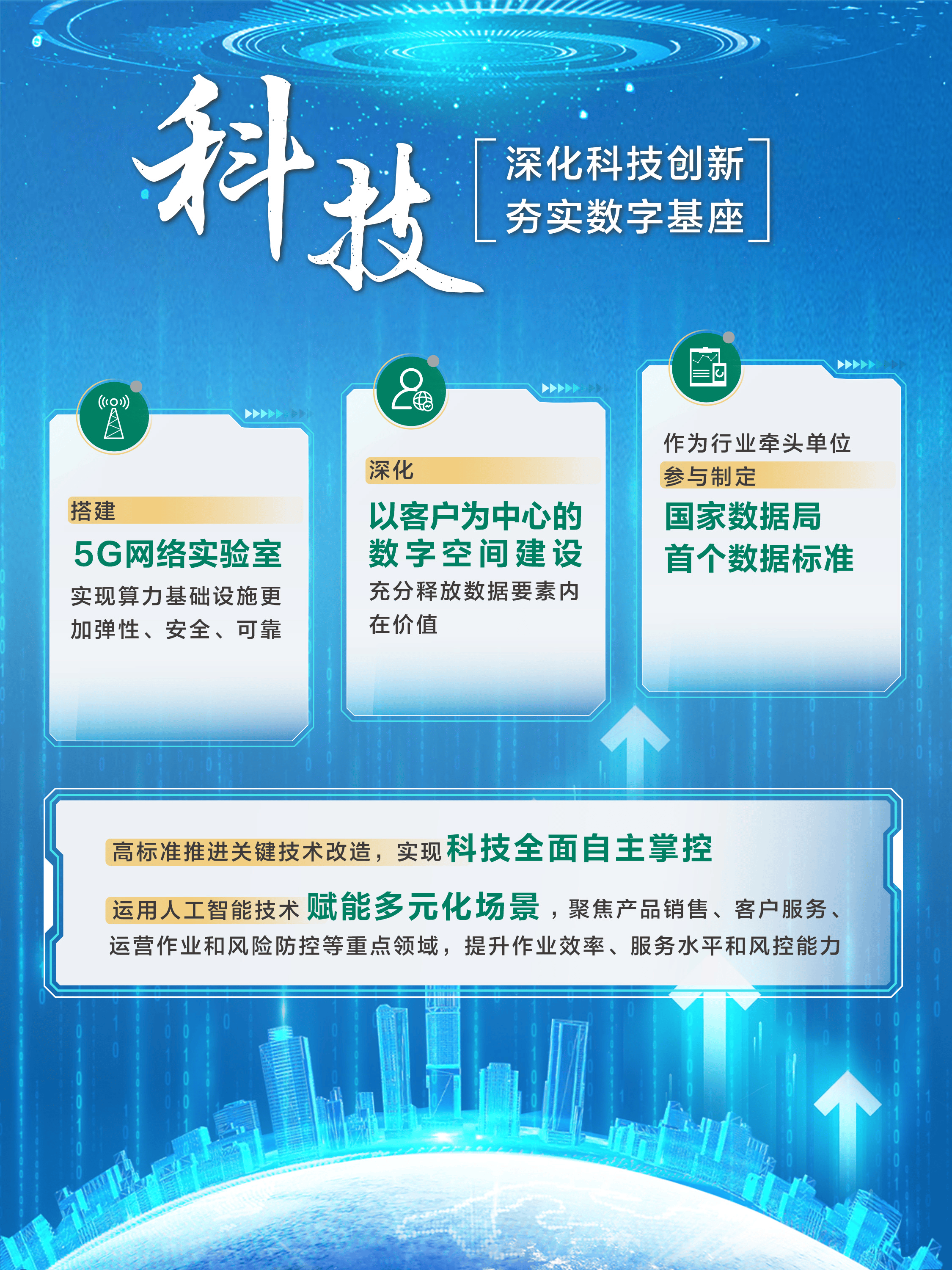科技创新多点开花。高标准推进关键技术改造,实现科技全面自主掌控。运用人工智能技术赋能多元化场景,聚焦产品销售、客户服务、运营作业和风险防控等重点领域,提升作业效率、服务水平和风控能力,为公司高质量发展注入强劲动力。
