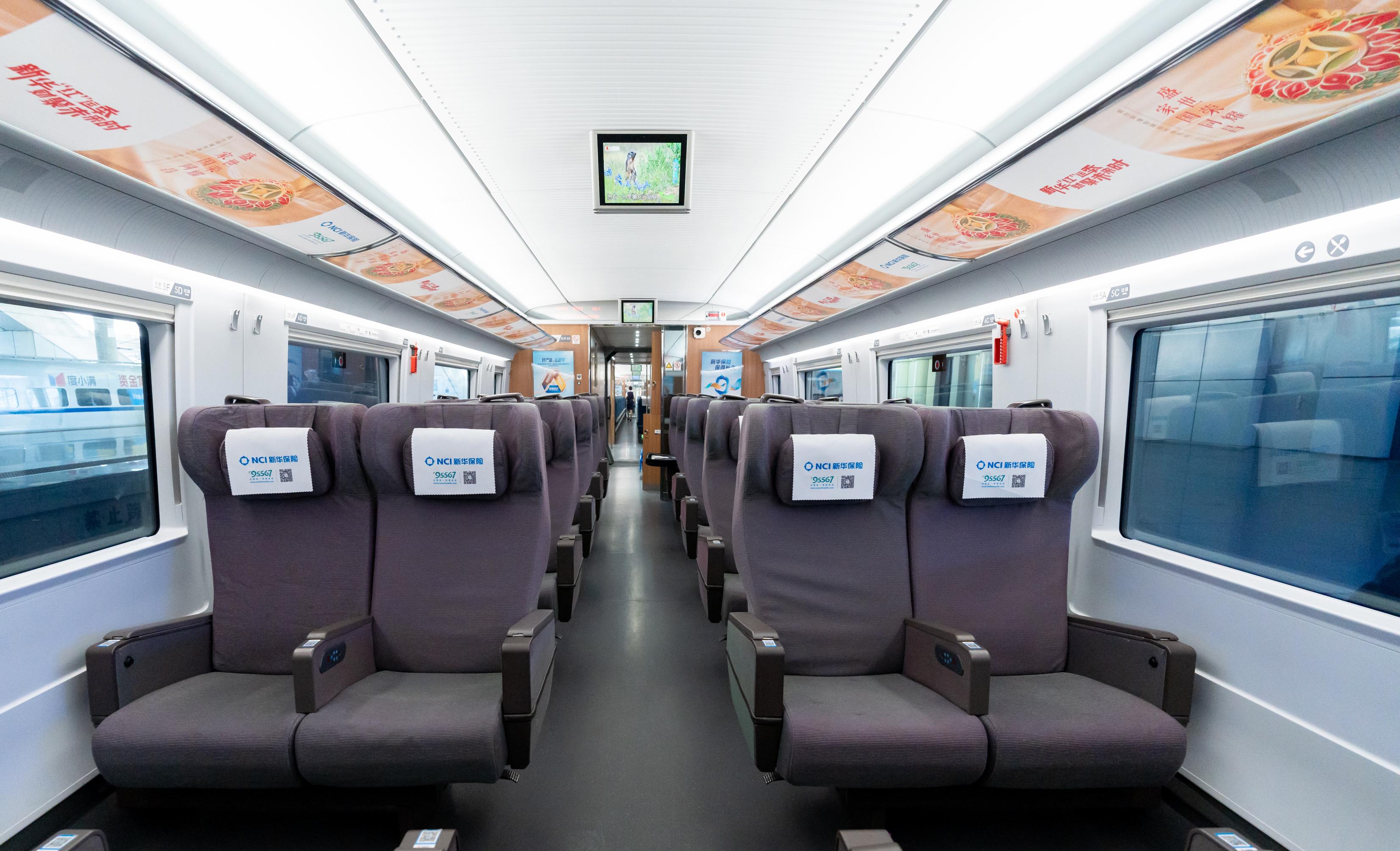 新华保险冠名品牌专列围绕“保得长久”核心价值主张,打造了丰富的视觉传播场景。列车车身贴有“新华保险 保得长久”品牌口号,车厢内设有主题海报、座椅头片、桌板广告、天幕灯箱、LED屏等多点位传播阵地,系统展示新华保险在以分红险为代表的多元产品体系、品牌实力、客户服务等领域的核心优势。