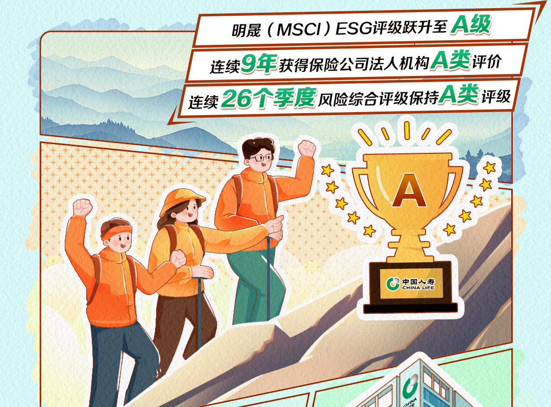 作为国内寿险行业“头雁”,中国人寿在ESG领域的探索与实践具有示范意义。该公司坚持以习近平新时代中国特色社会主义思想为指导,坚决贯彻落实党中央决策部署,充分发挥保险业经济减震器和社会稳定器功能,着力做好金融“五篇大文章”,加快推进高质量发展,全力提升环境、社会及治理表现,更为社会责任履行输出创新解决方案。中国人寿明晟(MSCI)ESG评级跃升至A级,荣获“第十四届中国证券金紫荆奖——卓越上市公司奖”“保险业社会责任方舟奖”等奖项,这些成绩见证了与国际接轨兼具中国特色的“国寿ESG成长之路”。
