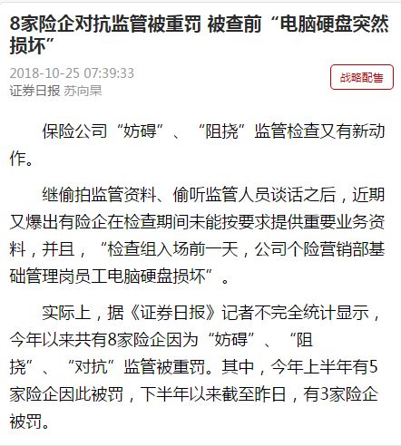 近期,银保监会以及各地派出机构发布的监管函就表明,线下的保险销售误导情况依然不容乐观。这不,《证券日报》最新的一篇文章就统计称,今年以来,已经有8家险企因为妨碍、阻碍、对抗监管被处以重罚。其中一家公司在监管检查组入驻的前一天“电脑硬盘损坏,原留存的所有海口本部产说会视频录像全部丢失”。