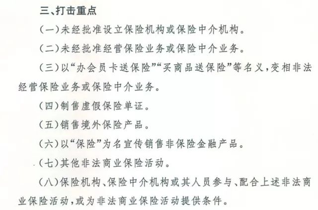 《方案》明确了此次专项行动的打击重点。值得注意的是,打击重点中,明确包括“未经批准经营保险业务或保险中介业务”一项,这让不少市场人士联想到了一些线上业务,例如各种并无牌照的保险科技平台,以及利用微信公众号销售保险产品的行为,《方案》的出台究竟会对线上业务产生哪些影响?