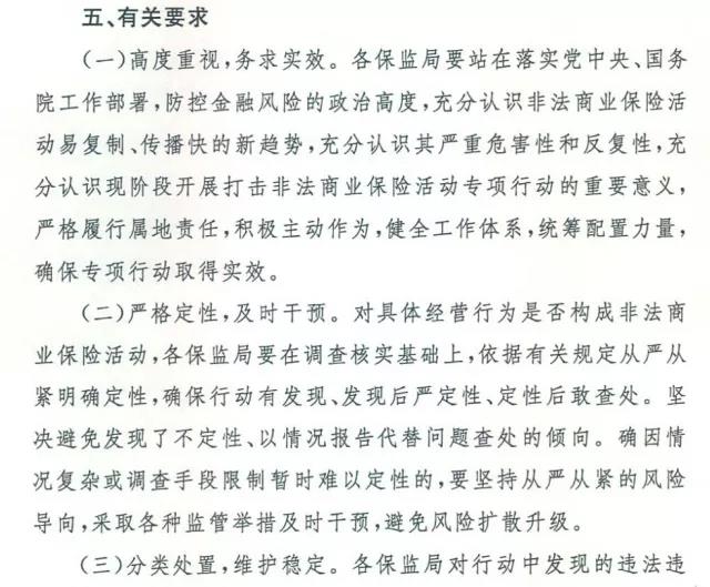 银保监会明确,对于各类非法商业保险活动,在定性上要“从严从紧”,坚决避免发现了不定性、以情况报告代替问题查处的倾向。
