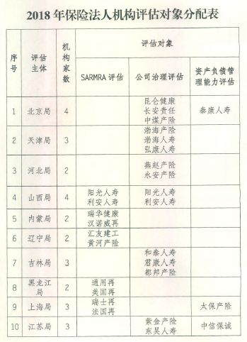 36家地方保监局均将派人参与三项现场评估工作,每个保监局负责不同的保险公司,数量在2-4家不等。