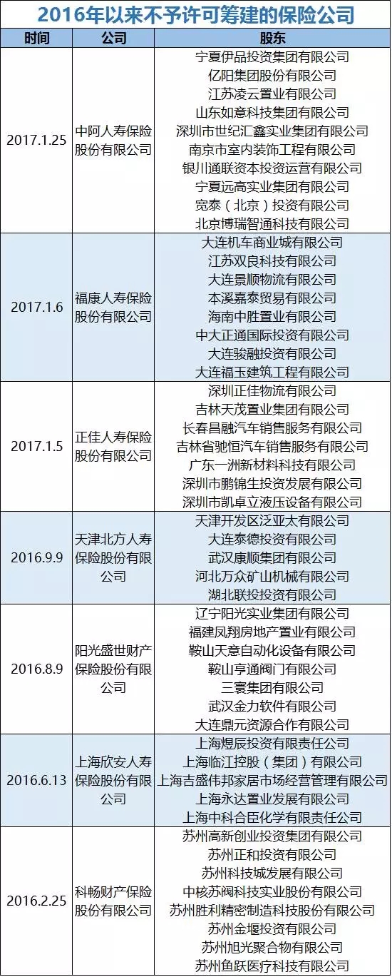 表2:2016年以来不予批筹的险企
