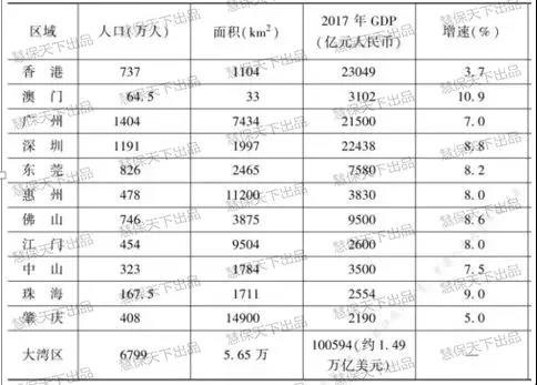 粤港澳大湾区包括香港特别行政区、澳门特别行政区和广东省广州市、深圳市、珠海市、佛山市、惠州市、东莞市、中山市、江门市、肇庆市(以下称珠三角九市),总面积5.6万平方公里,2017年末总人口约7000万人,是我国开放程度最高、经济活力最强的区域之一,这些都为其保险业的发展奠定了基础。